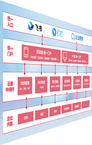 对协作平台提供支持服务,,,支持企业应用与协作平台对接,,,包含组织同步、、、消息集成、、待办集成等。。。支持目前主流的协作平台:钉钉、、、、企微和飞书。。。。